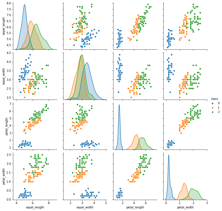 import numpy as np import pandas as pd data = pd.DataFrame(data,columns=["sepal_length","sepal_width","petal_length","petal_width"]) data["class"] = target
